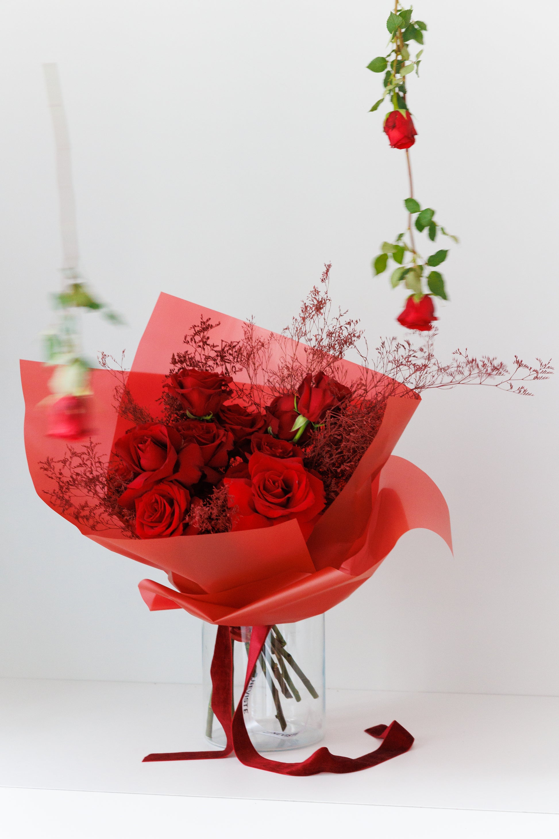 Ovaj buket se sastoji od crvenih ruža i grana crvenog Limoniuma. Za sve koji żele jednostavno i tradicionalno, dolazi u 5 veličina.