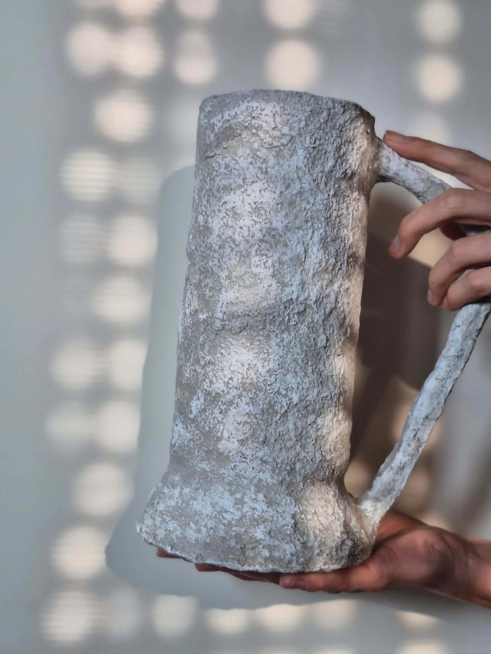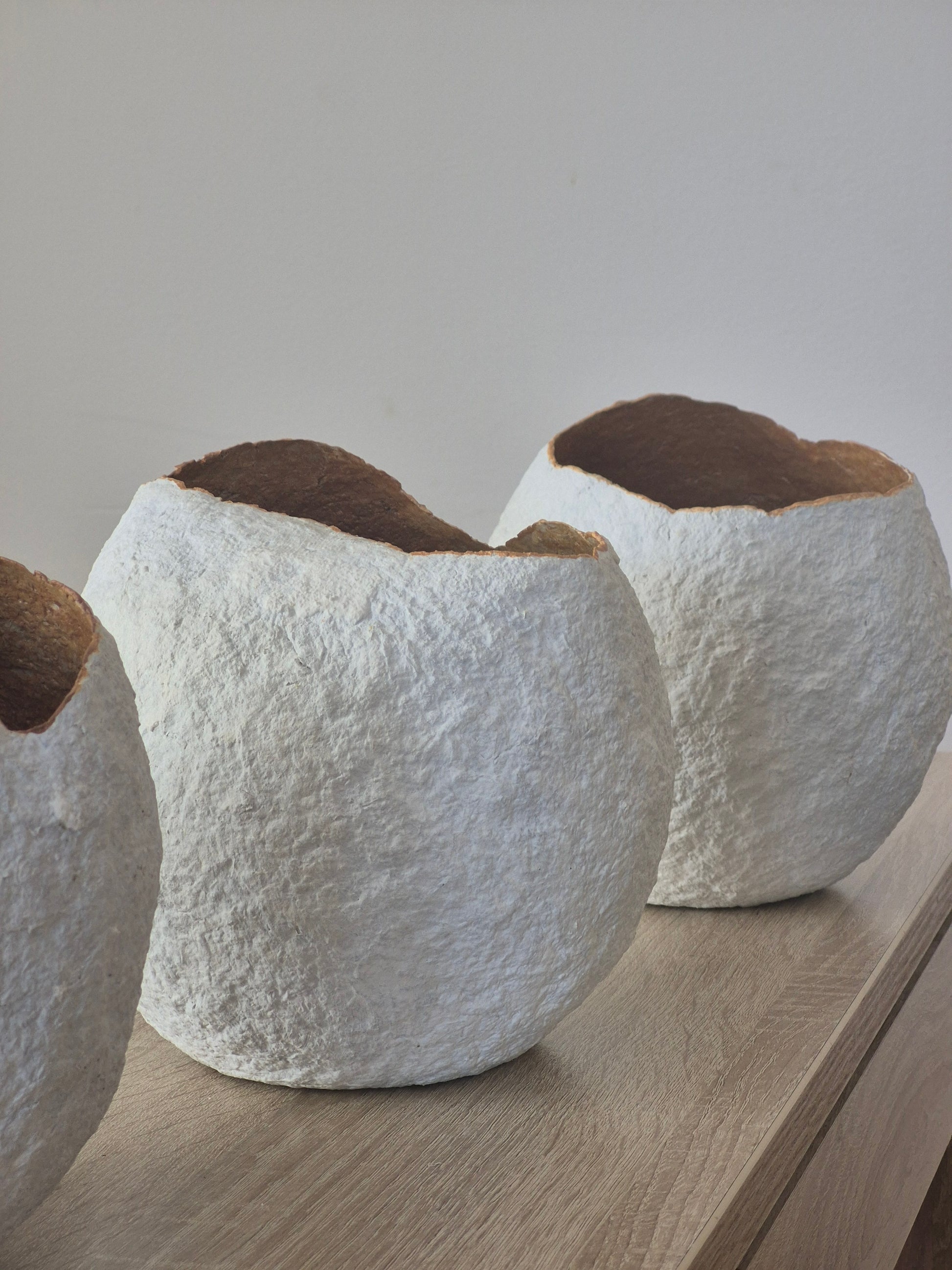 Ručno izrađena dekorativne vaze od papirne gline. Svaki komad oblikovan je rukama, što rezultira jedinstvenom teksturom i formom koja naglašava autentičnost ručnog rada.
