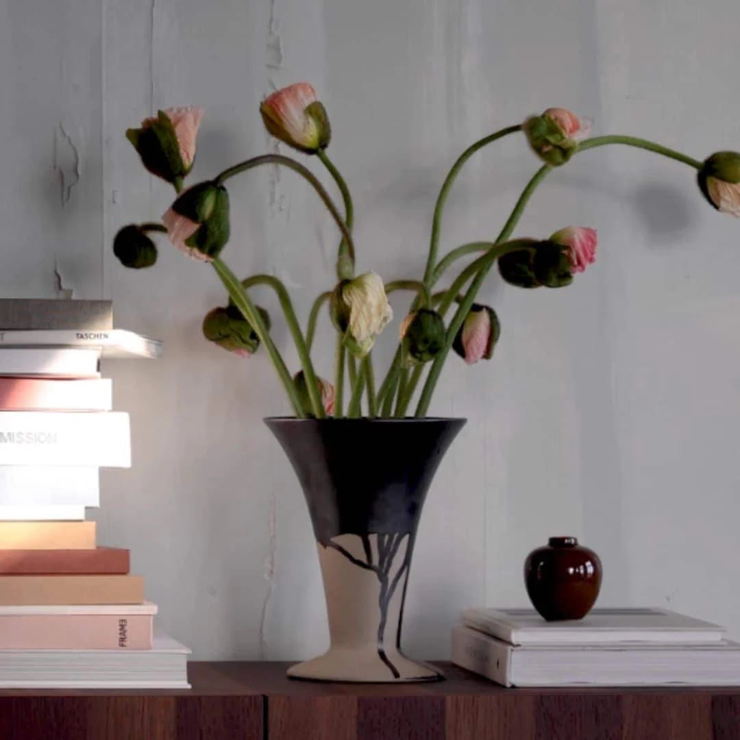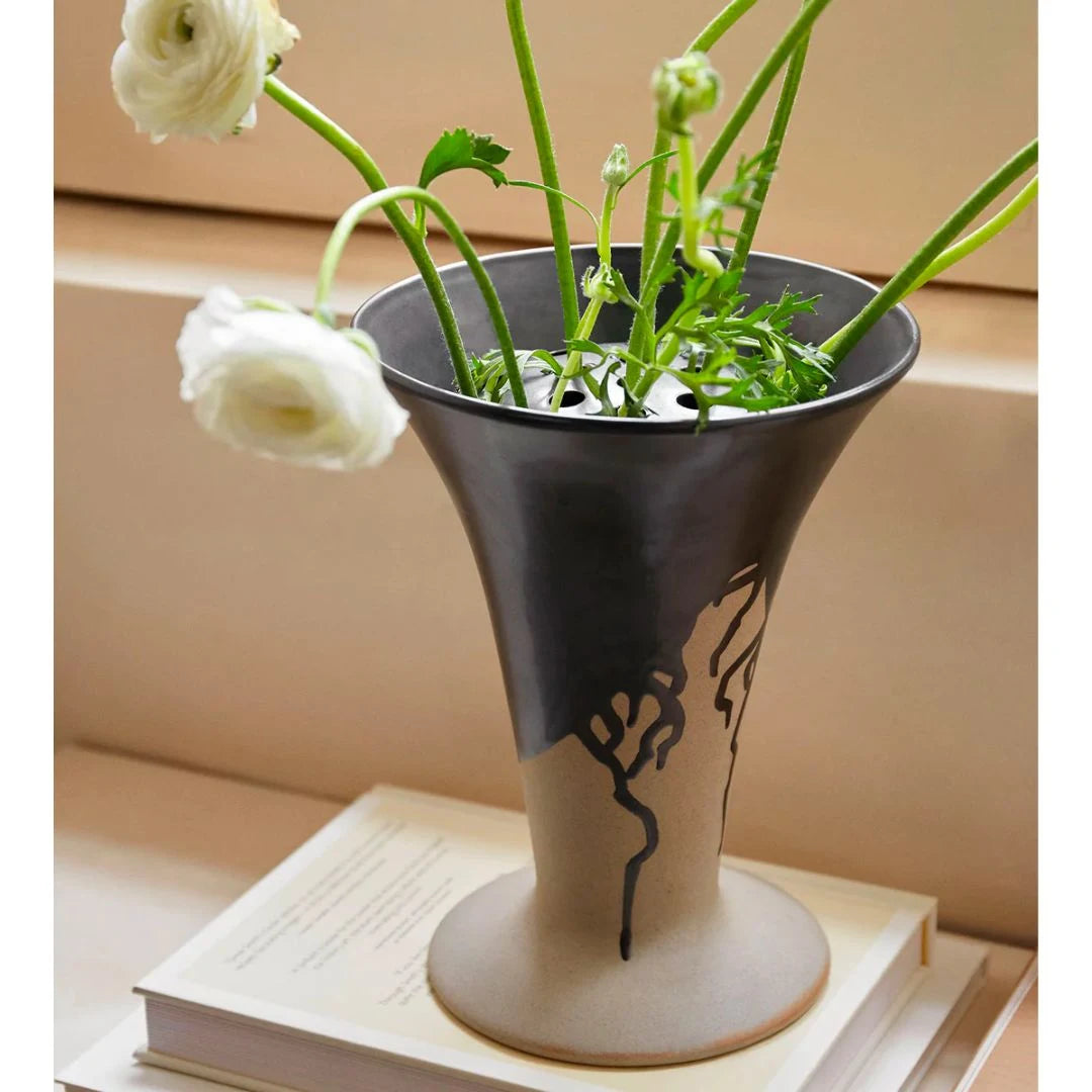 Vaza Flores poziva vas na stvaranje raskošnih cvjetnih aranžmana. Inspiracija za dizajn proizašla je iz klasičnih "tulipiere" vaza koje su poznate su po svojim funkcionalnim i dekorativnim kvalitetama. Vaza Flores omogućuje vam pojedinačno aranžiranje cvijeća kako bi vaš buket izgledao sjajno iz različitih kutova. Elegantna i vitka vaza Flores ima umetak s rupama koji se može ukloniti, što vam omogućuje da je koristite kao klasičnu vazu za tulipane, kao i običnu vazu. Flores je iznutra potpuno glazirana, dok je izvana ukrašena prepoznatljivim uzorkom prskanja, što svakoj vazi daje jedinstven i taktilan izraz.