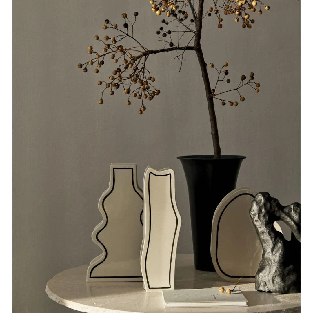 Vaze kolekcije Paste igraju se s 2D i 3D siluetama kako bi se stvorio neodoljiv dodatak za dom. Sastoje se od dvije identične, ravne ploče keramike pričvršćene na cilindričnu vazu, a prepoznatljiv dizajn daje dojam kopiranja i lijepljenja. Pomaknuti crni obrisi ručno su oslikani, dajući vazi razigran izraz. Napunite Paste vazu omiljenim cvijećem i postavite je na prozorsku dasku, na stol ili na policu u dnevnoj sobi kako biste svom prostoru dali poseban izgled.